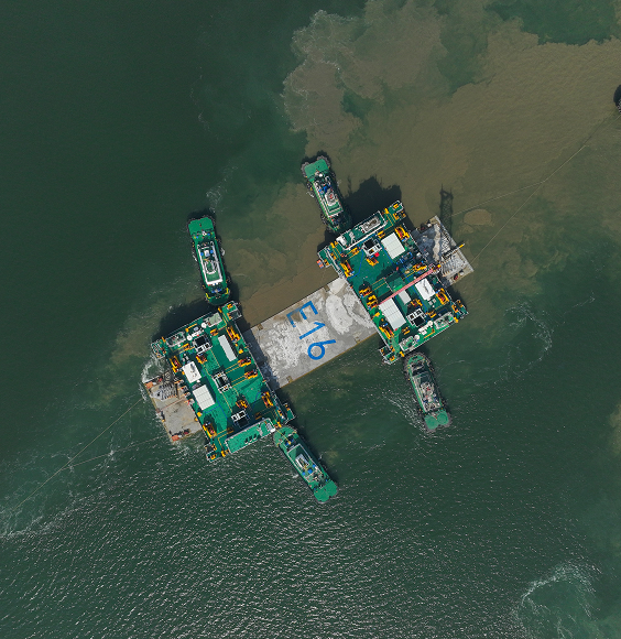 The E16 pipe section and the installed E15 pipe section are both full-curve pipe sections. The axis of the immersed pipe is 148 meters long, 33.4 meters wide, 9.7 meters high, and weighs about 47,000 tons. The depth of the sinking position is about 27 meters.