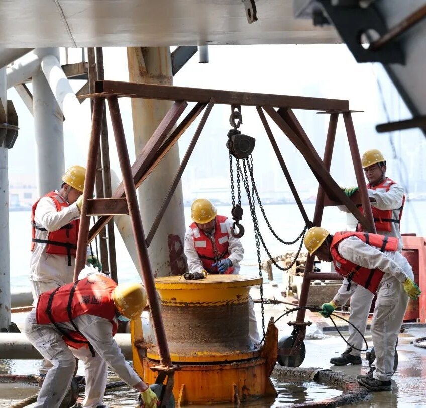 The floating installation work was officially started at 6:00 on the same day. After completing the tugboat formation, floating, mooring, sinking, pulling, hydraulic crimping and other procedures, the docking with the E15 pipe section was successfully completed at 19:50 on the same day. It takes about 14 hours.