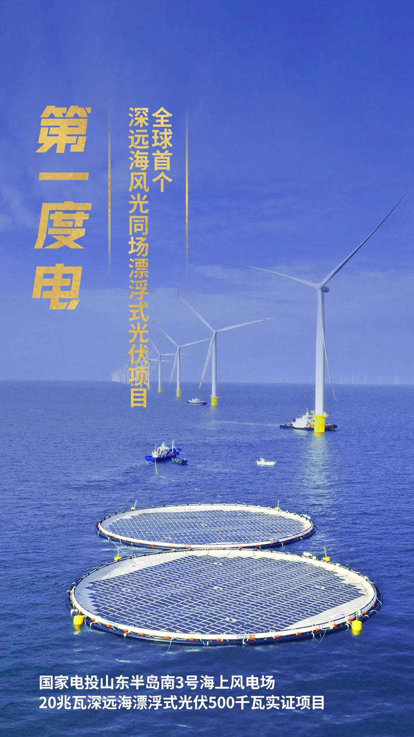 On October 31, 2022, SPIC Shandong Peninsula South 3 Offshore Wind Farm 20 MW Deep Sea Floating Photovoltaic 500 kW Demonstration Project successfully generated electricity, becoming the world's first deep sea scenery floating photovoltaic demonstration project.