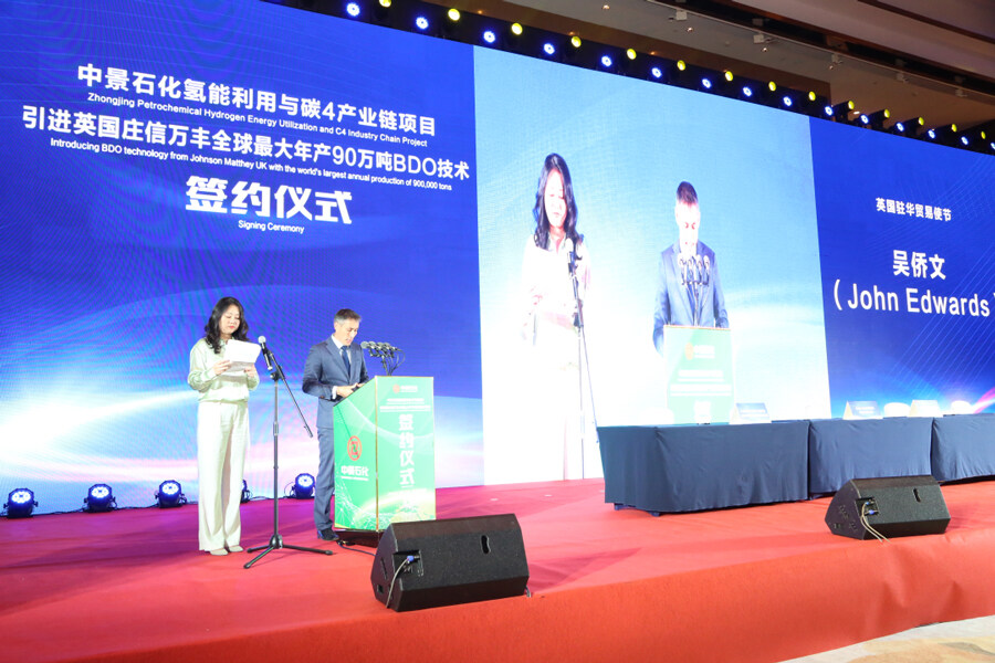 The signing ceremony was presided over by Chen Hua, Executive President of Zhongjing Petrochemical Group. Attending the signing ceremony were Xander Dupain (Sunder Dupan), Global Business Licensing Manager of Johnson Matthey Group, UK Johnson Matthey Group Dr. Su Lijun, President of the China Region, John Edwards, the British trade envoy to China, Weng Shengjin, Chairman of the Board of Directors of Zhongjing Petrochemical Group Co., Ltd., Zhu Zebin, General Manager of Zhongjing Petrochemical Co., Ltd., Liu Weiqi, Deputy General Manager, and strategic cooperation units of the project , major equipment suppliers, China Export-Import Bank Fujian Branch and other units represented more than 500 people.