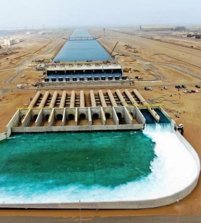 Oil refineries and power stations need seawater for cooling. The drainage project, which was contracted by China Harbor and built with the help of the Fourth Shipping Bureau of China Communications, mainly introduces seawater for cooling and fire fighting water for refineries and power stations, as well as discharging environmentally friendly wastewater into the deep sea. Designed seawater supply/discharge capacity of more than 500,000 cubic meters per hour, is a large comprehensive EPC project covering water conservancy, road, bridge, pile foundation, house construction, foundation reinforcement, mechanical and electrical, control and other professional.