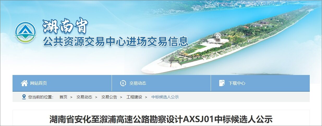 Recently, the Hunan Provincial Public Resource Trading Center released the announcement of AXSJ01 bid winning candidates for the survey and design of the Anhua Xupu Expressway in Hunan Province. The project was won by Hunan Provincial Transportation Planning Survey and Design Institute Co., Ltd.