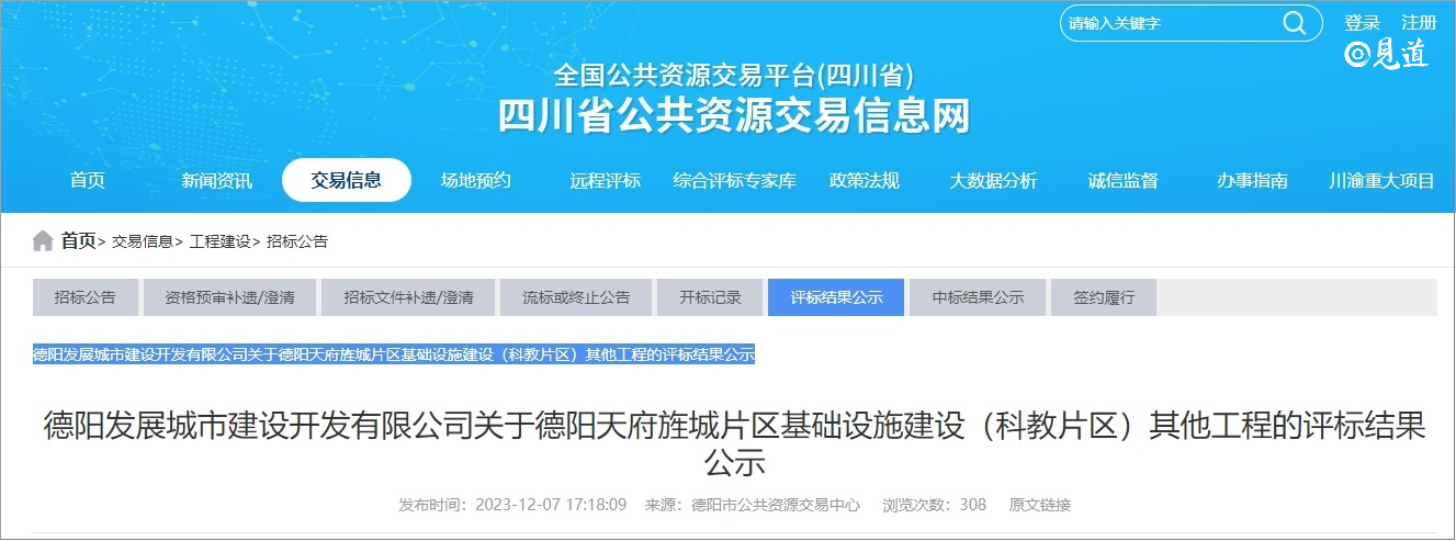 2023年12月7日,德阳市公共资源交易中心和内蒙古自治区公共资源交易网分别发布了德阳发展城市建设开发有限公司关于德阳天府旌城片区基础设施建设(科教片区)其他工程的评标结果公示以及土默特右旗水务投资(集团)有限公司黄河流域内蒙古自治区土默特右旗段国土空间生态保护修复工程中标候选人公示,详情如下:
