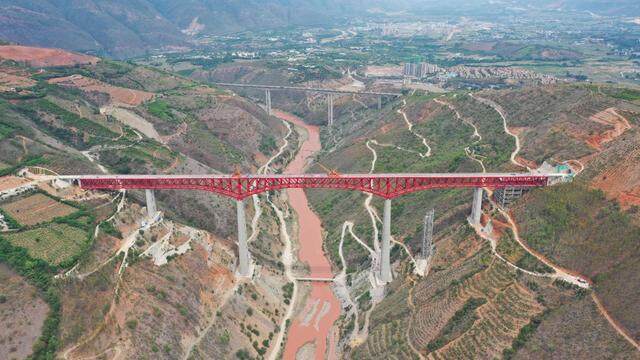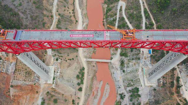 It is understood that the Yuanjiang Double Line Super Bridge is located in Yuxi City, Yunnan Province, and is a key control project for the entire China-Laos Railway. The bridge flies over the V-shaped Red River Alpine Gorge and integrates large spans and high piers. The main bridge is a variable truss high through type continuous steel truss structure with a maximum span of 249 meters, the highest bridge pier 3 is 154 meters high, and the highest The L6 temporary pier support is 133 meters high, which is the highest in the world for the construction of similar railway bridges.