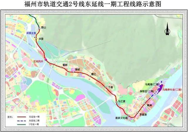 On September 14, the official website of Fuzhou Metro issued the "Social Stability Risk Announcement for the Phase I Project of the East Extension Line of Fuzhou Rail Transit Line 2". The east extension project of Fuzhou Rail Transit Line 2 extends from the section behind Gushan Station in the first phase of Line 2 to Mawei and ends near Mawei Port. The total length of the line is about 16.8km, all of which are laid underground with 11 stations in total. , A Mawei parking lot was newly added across the line, and a main transformer in Yangli was built.