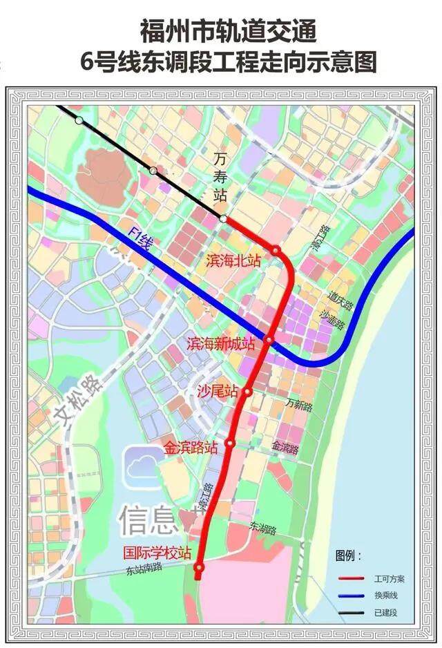 On September 14, the official website of Fuzhou Metro also simultaneously released the "Fuzhou Rail Transit Line 6 East Transfer Section Project Social Stability Risk Publicity." The east transfer section of Fuzhou Rail Transit Line 6 starts at Wanshou Station, the early terminus of Binhai New City, Changle District, and ends at Changle Binhai New City International Bilingual School. The main line goes to Yandao Qing Road-Zhangjiang Road-International Bilingual School. The total length of the line is 5.34 km, and the underground line laying method is adopted. There are 5 stations with an average distance of 1.12km. The east transfer section no longer has new depots, parking lots, control centers, and main substations. The project uses the Henggang depot and Zhanglan parking lot constructed in the preliminary project of Line 6 to connect to the Henggang control center, and the existing operation The former main substation and Wanshou main substation provide power.
