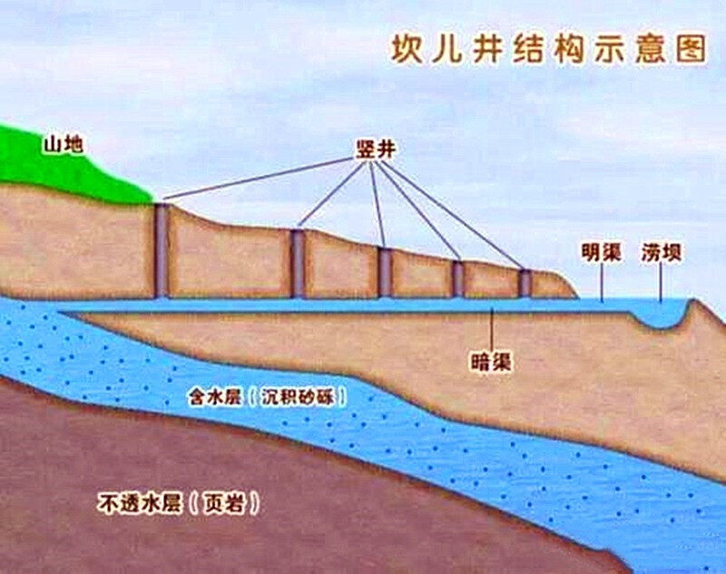 • 坎儿井,是新疆干旱地区开发利用地下水最早的水利工程,更是古代劳动人民智慧的结晶