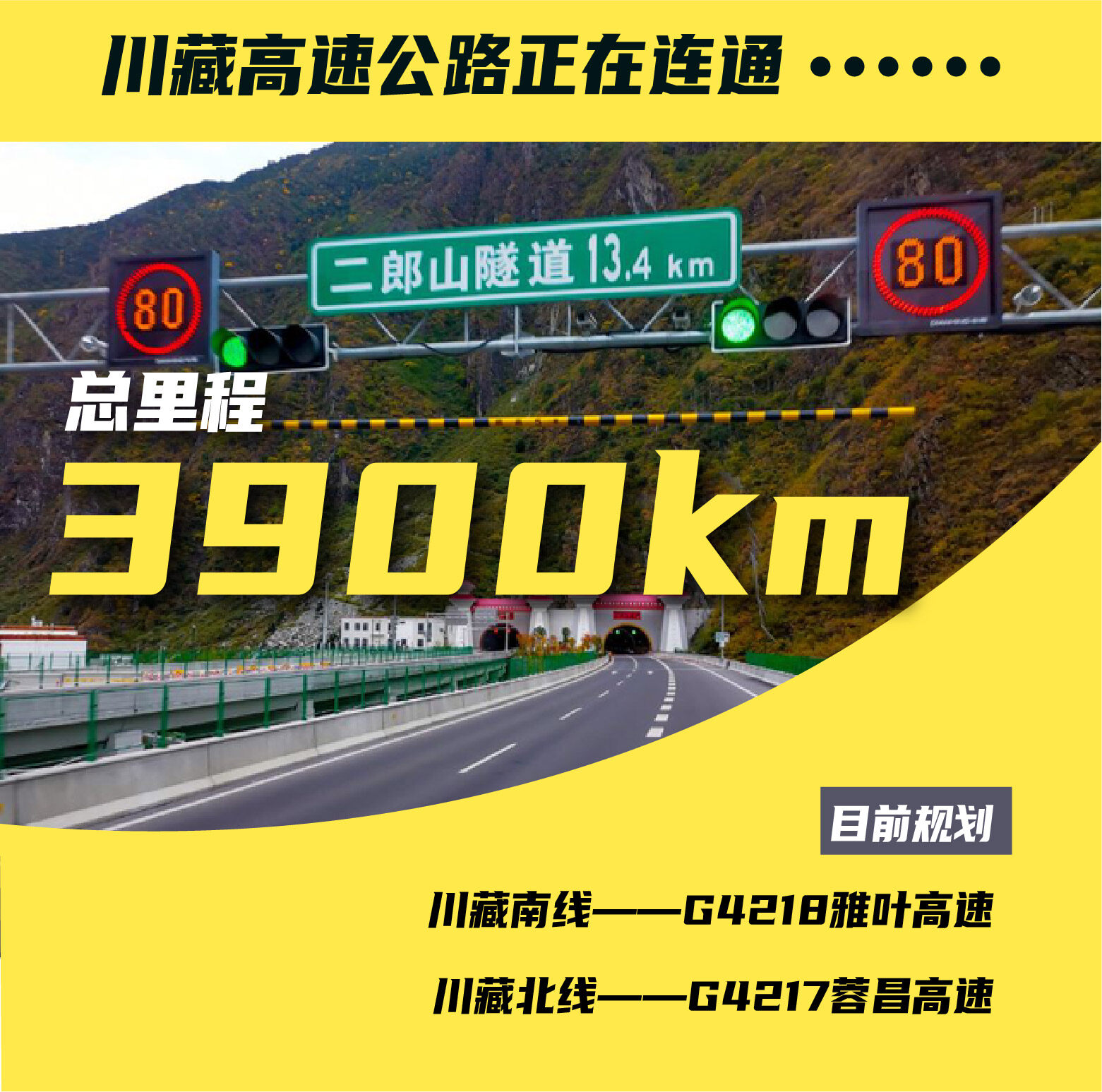 从雅康高速13.4公里的二郎山特长隧道,到创造了6个首次、7个第一的川藏第一桥“兴康特大桥”,从康定过境段世界进出口高差最大的跑马山1号隧道,到背着氧气瓶也要打通的拉林高速米拉山隧道,一代又一代筑路人历经千辛万险,攻克重重难关,只为那一条条通向青藏高原的康庄大道。