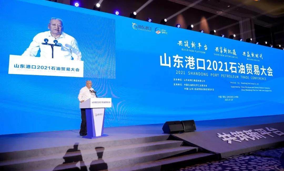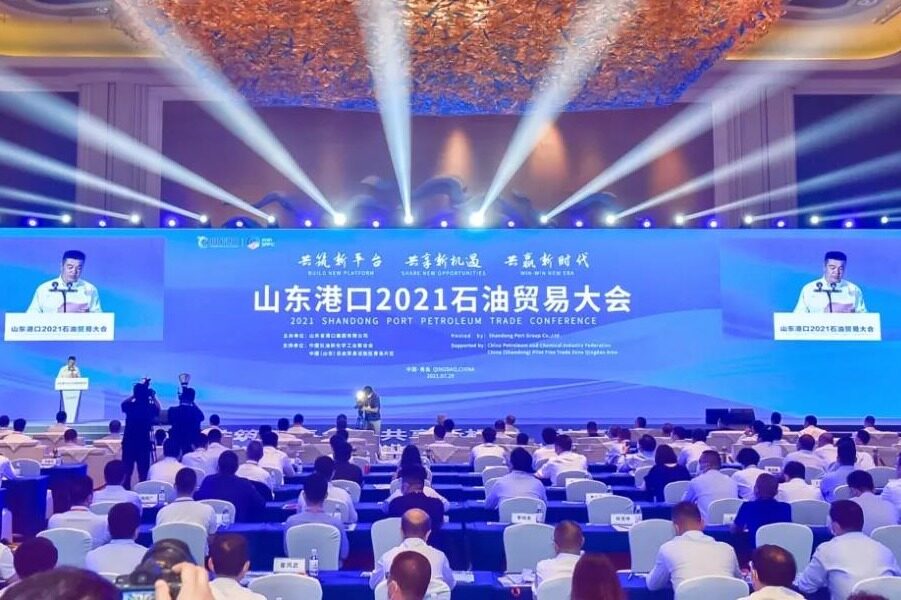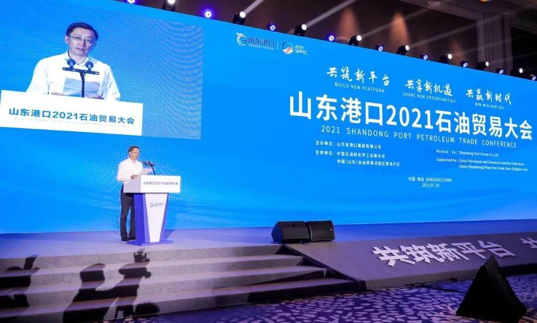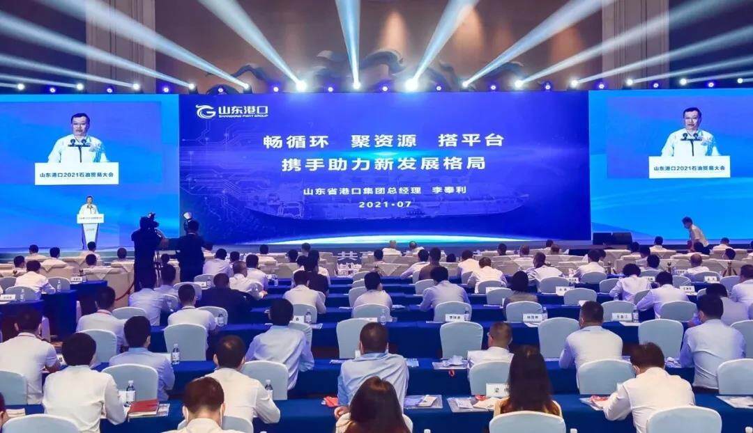 2021年7月29日,以“共筑新平台 共享新机遇 共赢新时代”为主题的山东港口2021石油贸易大会在青启幕。本次大会由山东省港口集团主办,中国石油和化学工业联合会、中国(山东)自由贸易试验区青岛片区管委承办。本次大会,旨在依托山东港口的重要枢纽和支点作用,加快构建覆盖油品等大宗商品上下游产业链的综合贸易服务平台,更好地服务石油产业升级,更好地服务客户和合作伙伴,服务大循环、双循环新发展格局。