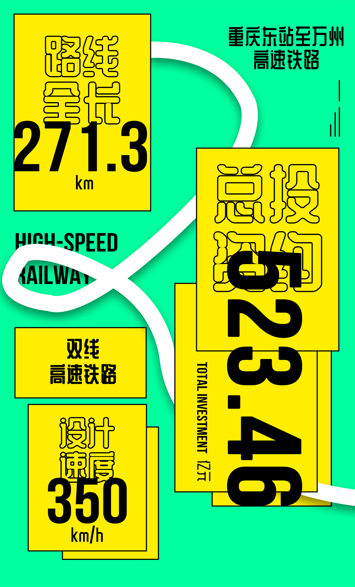 新建重庆至万州高速铁路位于重庆市境内,起于万州北站,经万州区、忠县、丰都县、涪陵区、巴南区至南岸区接入重庆枢纽重庆东站,采用350千米/小时双线高速铁路建设标准,线路总长271.32千米,其中正线251.38千米,联络线等相关工程19.94千米,含渝万-郑万联络线5.14千米,渝万-渝湘联络线7.94千米,渝宜高铁相关工程5.10千米,石沱公铁长江桥公路部分1.76千米。