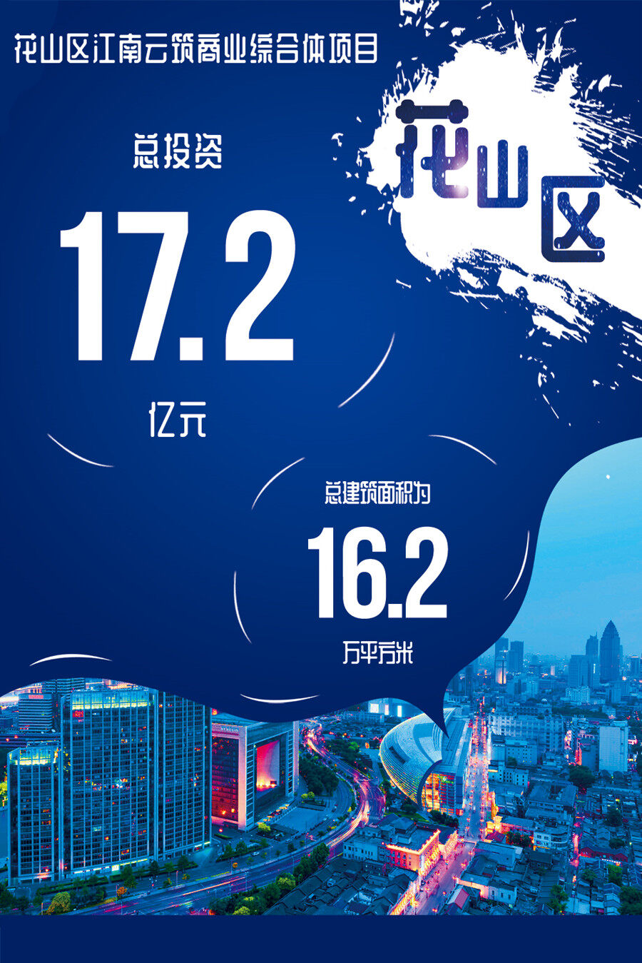 花山区江南云筑商业综合体项目:该项目由马鞍山奥润房地产开发有限公司投资建设,总投资17.2亿元,总建筑面积为16.2万平方米,建设集住宅、商业、幼儿园为一体的商业综合体。