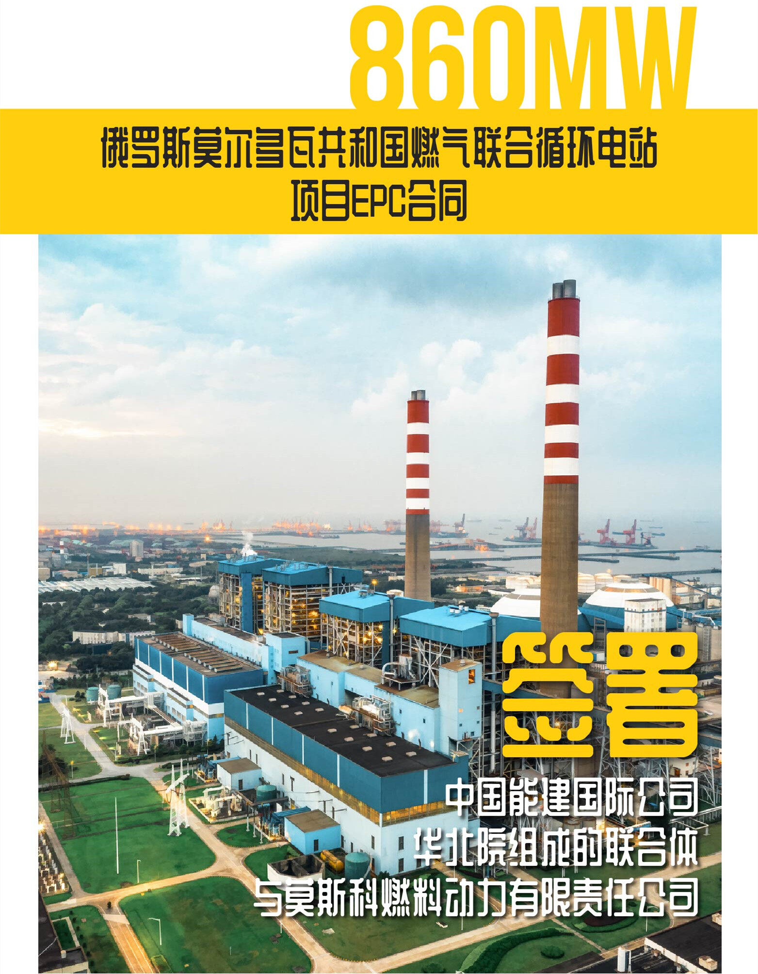 育新机,开新局。近日,中国能建国际和华北院组成联合体与莫斯科燃料动力有限责任公司签署俄罗斯莫尔多瓦共和国860MW燃气联合循环电站项目EPC合同。