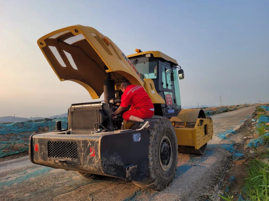 Despite being exhausted, the Shantui Emergency Rescue Team drove to the communist canal to overhaul the Shantui loaders, bulldozers, and road rollers used to reinforce the dam to ensure that each model and equipment can be restored. Normal use.