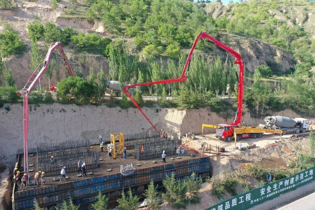 7月19日,银昆高速公路项目杜家沟大桥首个主墩承台完成大体积混凝土浇筑。