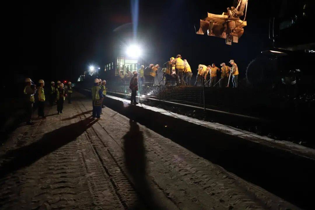 7月20日,乌将铁路扩能改造S2标项目同步完成“抽换电容枕、无缝线路切割、安装绝缘”“途卸长钢轨”“移设既有13号道岔”三个天窗点施工。
