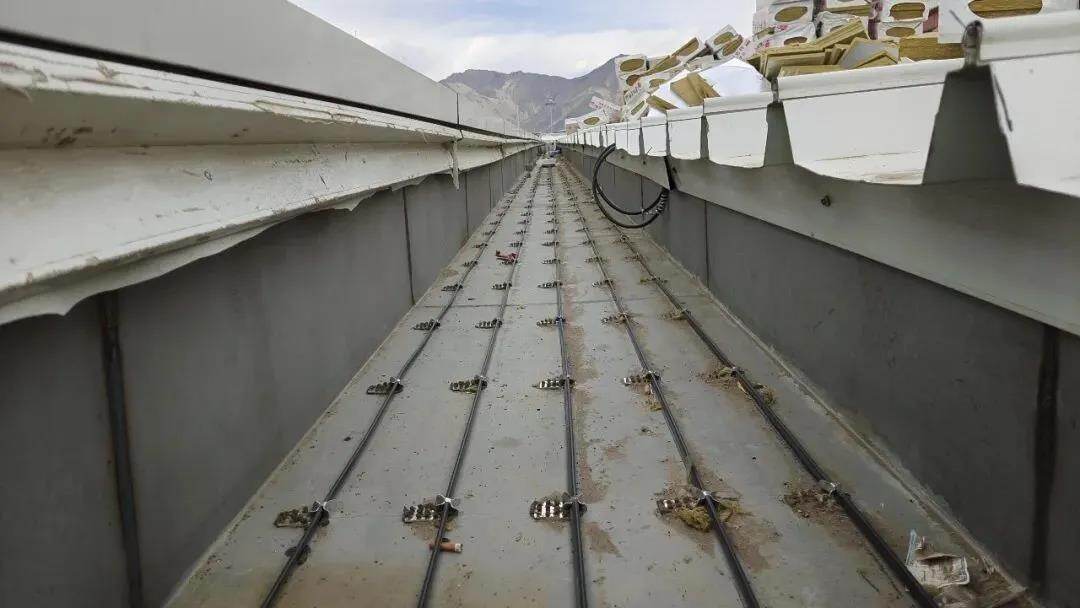 青藏高原冬季气温低,常规光照条件下积雪消融缓慢,天沟,即建筑物屋面两跨间的下凹部分阳光无法照射到融化的雪水极易二次冻结,堵塞排水通道,产生渗漏风险,增加屋面荷载。