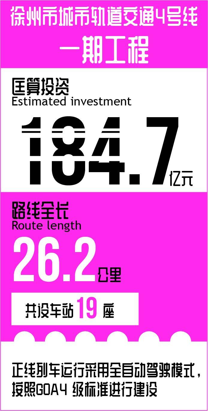 2021年8月11日,江苏建协工程咨询有限公司发布了徐州市城市轨道交通4号线一期工程的招标公告,所需资金来源由建设单位多渠道筹集解决,总投资184.7亿。