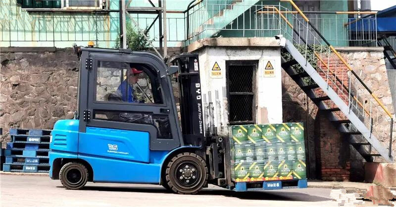 雪花啤酒是比亚迪叉车的老客户,比亚迪叉车非常了解雪花啤酒的需求,针对雪花啤酒物料搬运的这些痛点与需求,比亚迪新能源叉车提出了具有针对性的解决方案:比亚迪3.5吨电动平衡重式叉车服务于雪花啤酒。