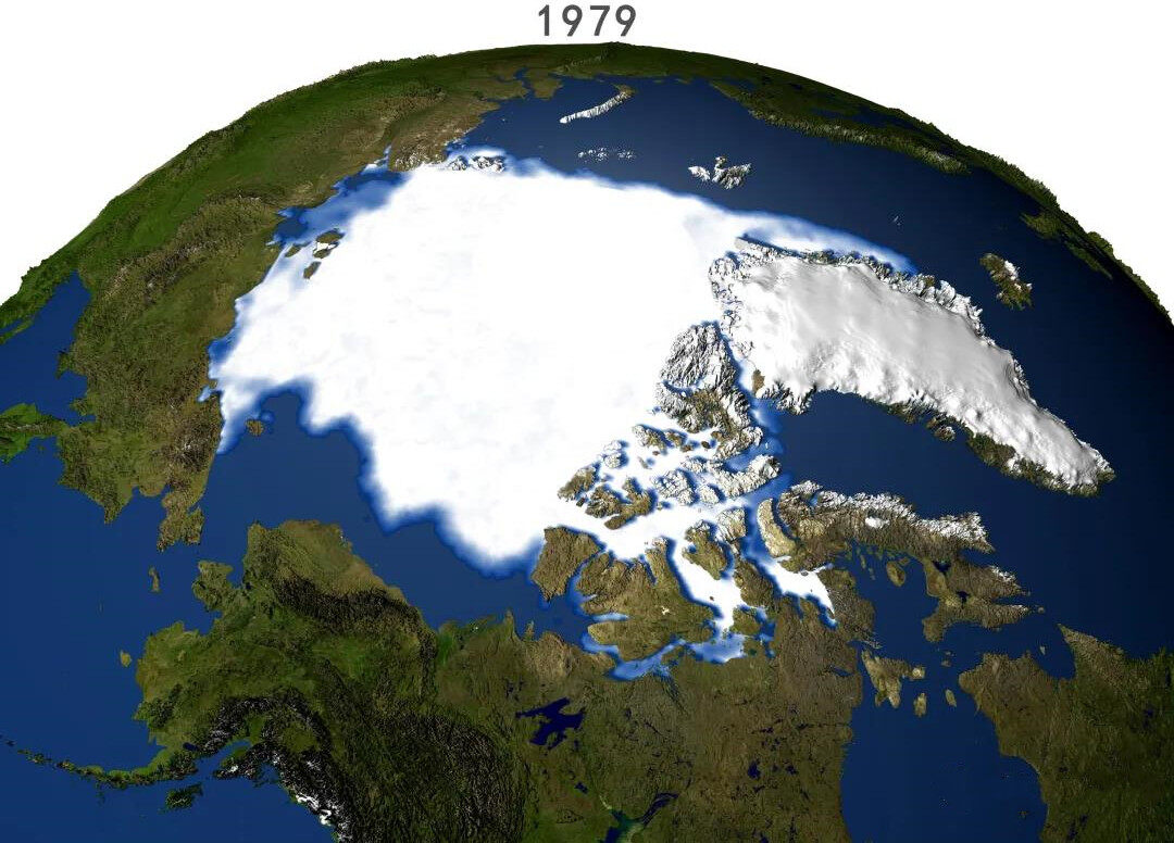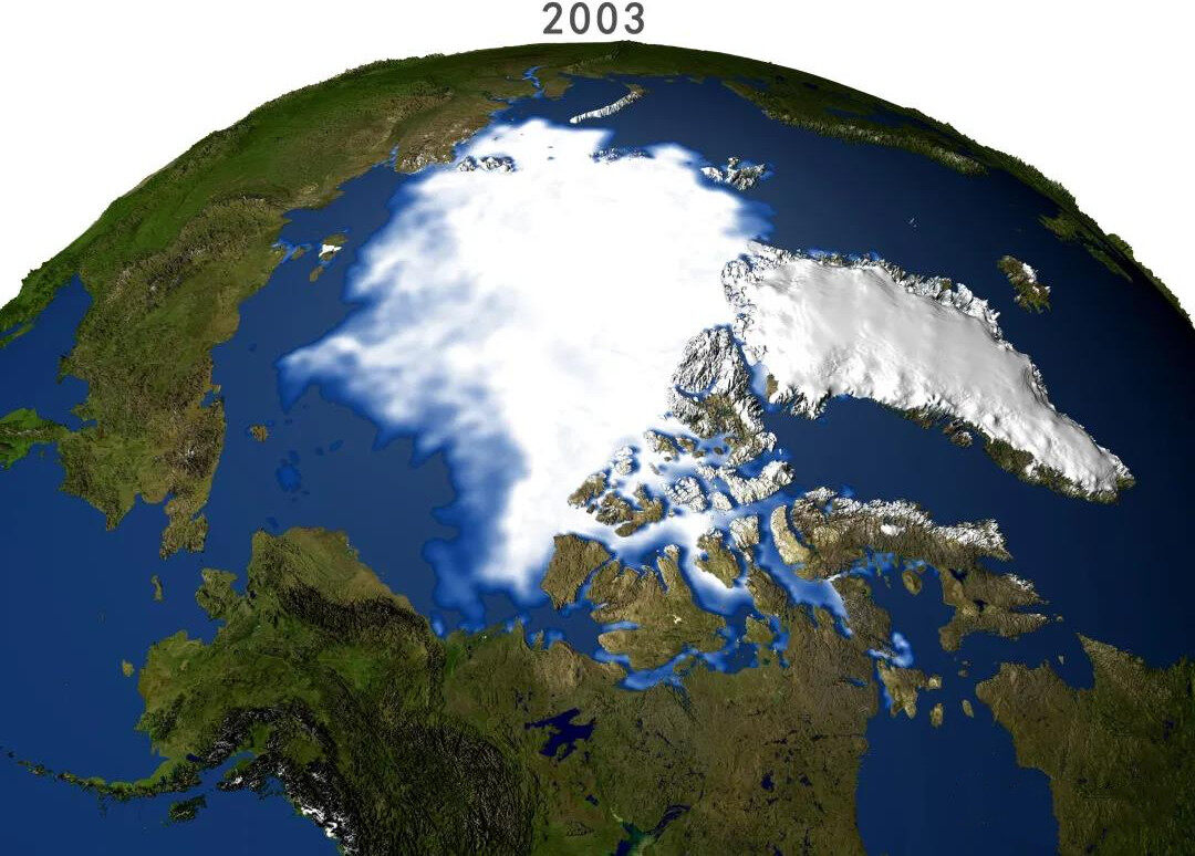 根据美国国家冰雪数据中心所收集的数据,北极海冰已呈长期缩减趋势。相比20世纪末,夏季海冰面积减少了2.0*10^6km^2,冬季海冰的厚度则在过去30年间至少变薄了1.75m,相当一部分多年来不会完全融化的海冰(多年冰)转变成了一年中融化又重新形成的季节性冰(一年冰)。