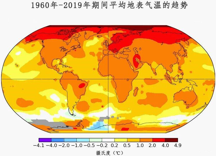 在这60年里的增温趋势中,北极得到大部分地区都高于地球其他地区,高达4℃,北极的各种特点在气候变化面前又反噬给了北极