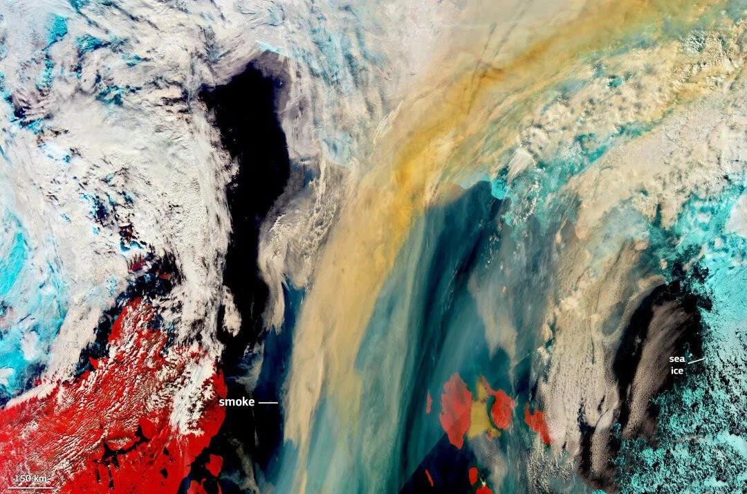 据多个气象机构及俄罗斯官方证实,西伯利亚野火的烟雾已经到达了北极,也是有记录以来的首次