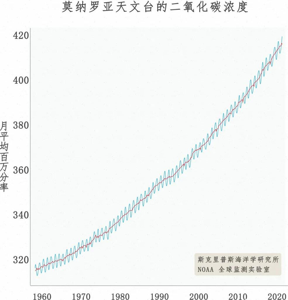 工业革命至今,大气中的二氧化碳增量超过45%,人类活动所需的能源排放了过多额外的二氧化碳,其在大气和海洋中将会持续数千年