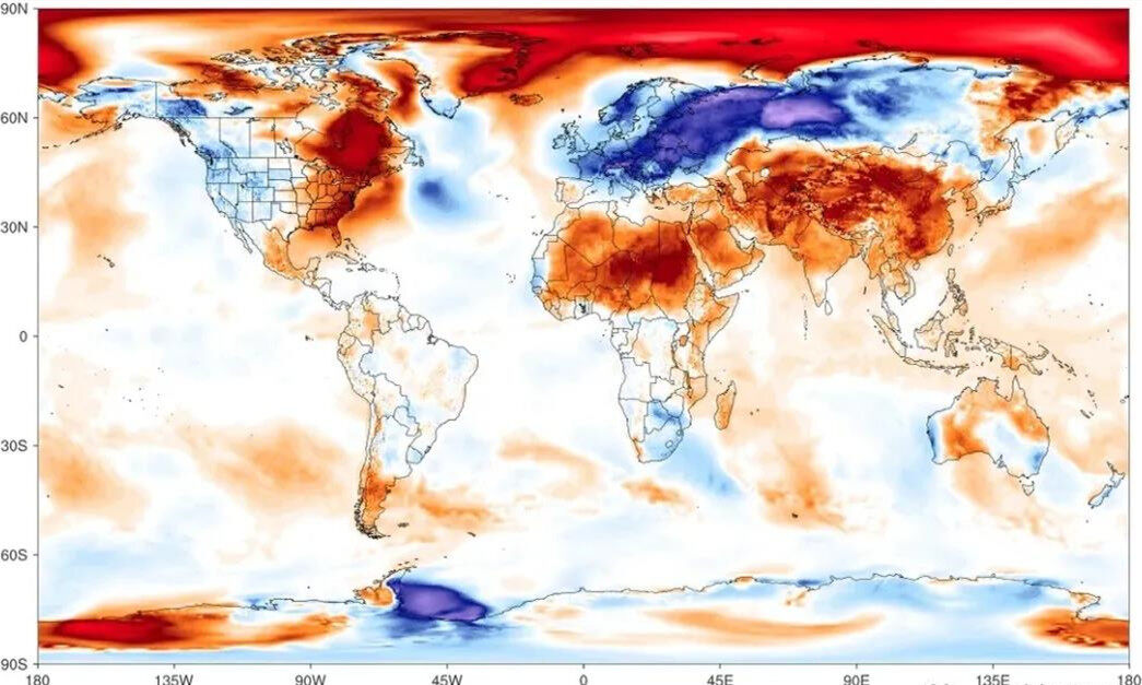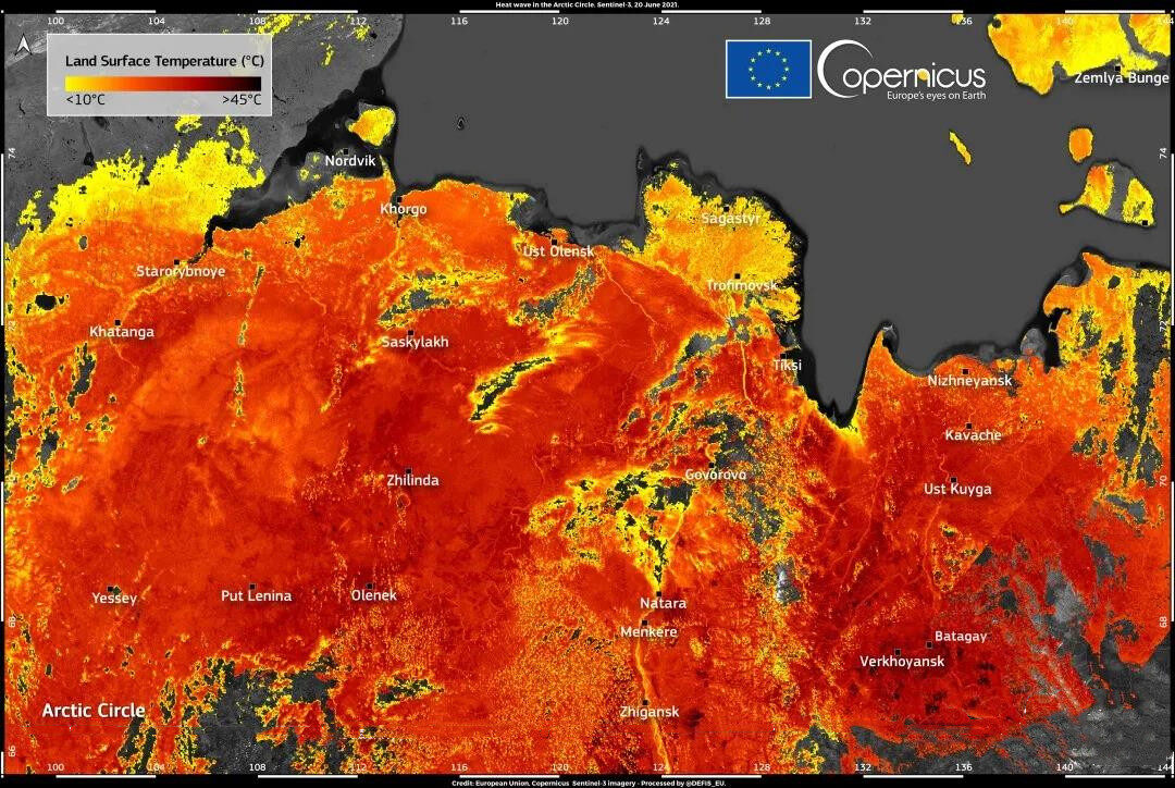 欧盟哥白尼计划的卫星传回的数据显示,西伯利亚各地的地表温度普遍超过35℃,在维克霍扬斯克镇附近达到了48℃。西伯利亚的地表温度记录被打破,北极迎来了令人难以置信的热浪。