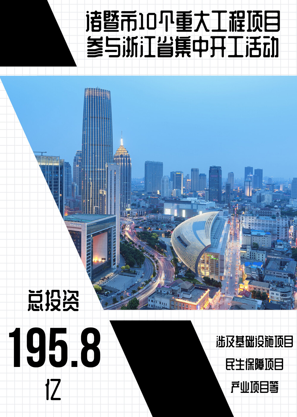 此次,绍兴市共37个项目参加这次集中开工活动,总投资826亿元,总投资位列浙江省第一,基础设施项目占14%、民生保障项目占16%、产业项目占70%。其中,诸暨有10个项目,总投资195.8亿元。