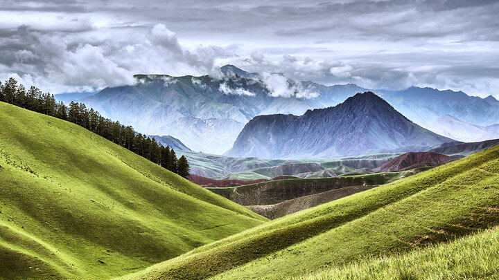 祁连山在河西走廊以南延伸了1000多公里,河西走廊是古代丝绸之路的主要动脉。它的平均海拔为4,500米,许多山脊高耸入云。