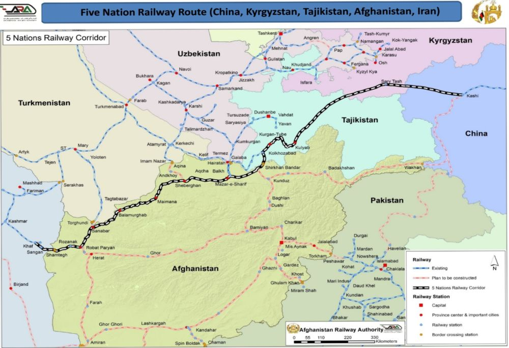 2018年,阿富汗国家铁路局(ANRA)表示,建设跨国铁路项目的技术和经济调查大约完成了50%。据有关当局称,将在阿富汗建造880公里的铁路线,并将阿富汗的北部地区与西部地区相连接。包括阿富汗,伊朗,塔吉克斯坦,吉尔吉斯斯坦和中国在内的五个国家都是该项目的参与者。同时,伊朗驻喀布尔大使馆经济顾问Sediq Qasimi Zakeri表示,伊朗强烈支持在五国之间建立这个铁路项目,该项目也将覆盖伊朗的恰巴哈尔港和阿巴斯港。