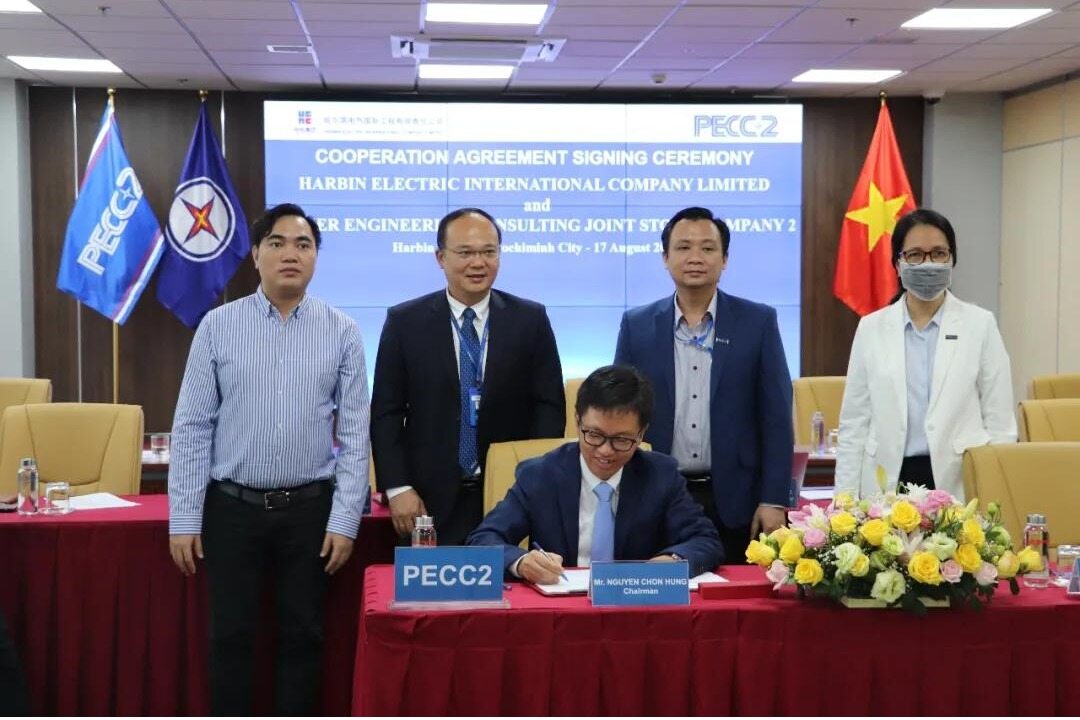 携手共进,共谋发展。2021年8月17日,哈电国际与越南第二电力工程咨询股份公司PECC2通过视频会议签订合作协议。