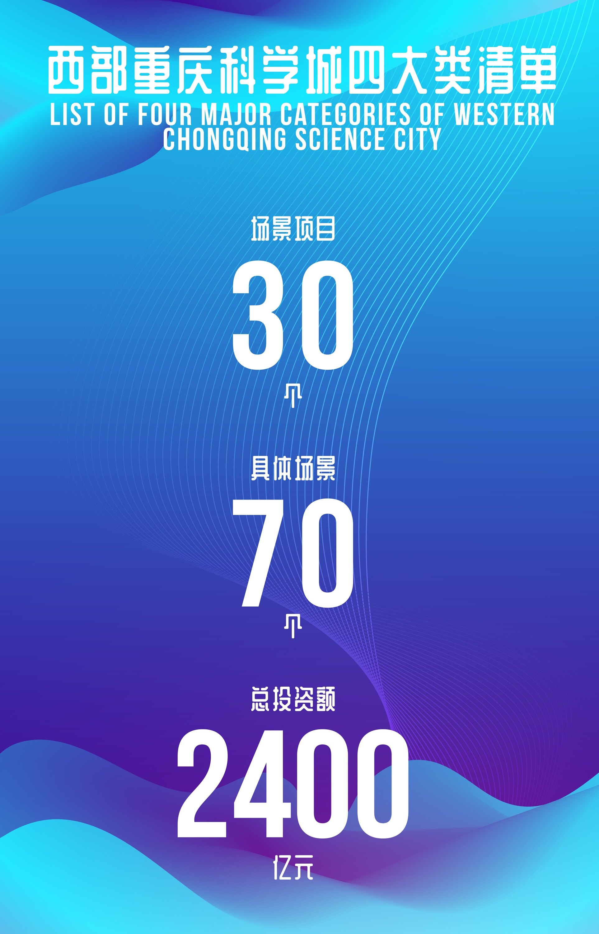 2021年8月25日,西部(重庆)科学城首届场景大会正式拉开帷幕,面向全球首次发布《2021年度西部(重庆)科学城重点应用场景清单》。据了解,清单包含了30个场景项目、70个具体场景,总投资额近2400亿元。