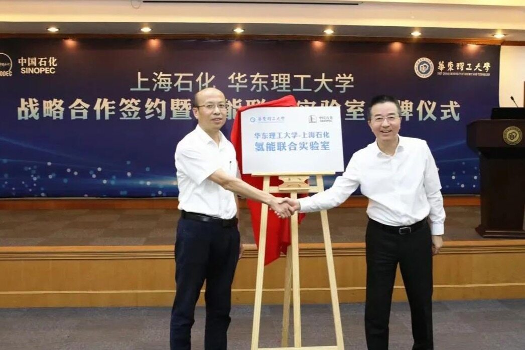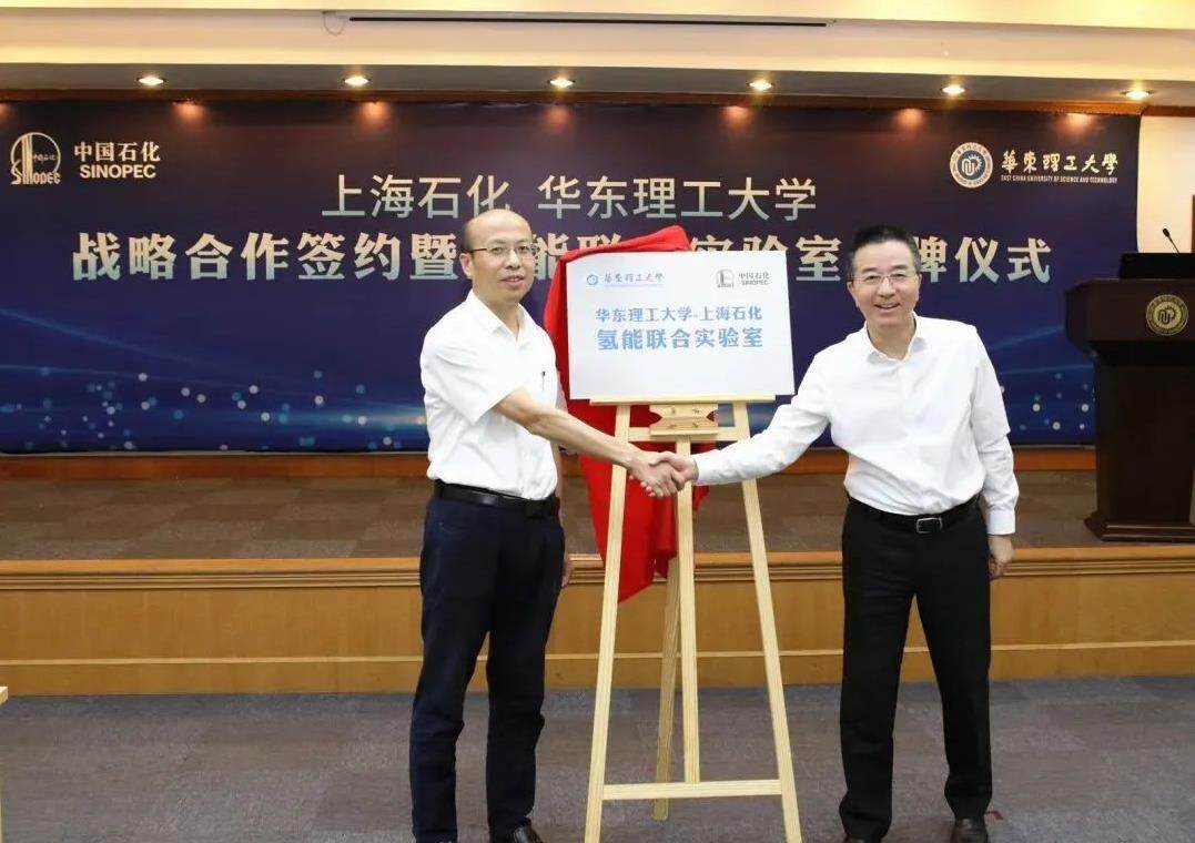 On August 27, 2021, East China University of Science and Technology and Sinopec Shanghai Petrochemical Co., Ltd. signed a new round of strategic cooperation signing and hydrogen energy joint laboratory inauguration ceremony in Huali Yifu Building. Shanghai Petrochemical Party Secretary and Chairman Wu Haijun, General Manager Guan Zemin, Deputy General Managers Huang Xiangyu and Huang Fei, etc., as well as Huali President Xuan Fuzhen, and Vice President Xin Zhong and Li Tao attended the signing ceremony. The signing ceremony was hosted by Li Tao.