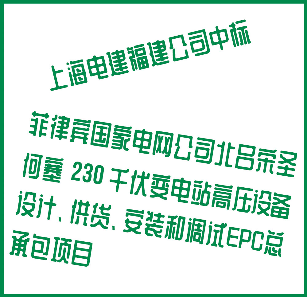 2021年8月27日,上海电建福建公司成功中标菲律宾国家电网公司北吕宋圣何塞230千伏变电站高压设备设计、供货、安装和调试EPC总承包项目。本次中标是业主对福建公司技术力量的充分信任和肯定。