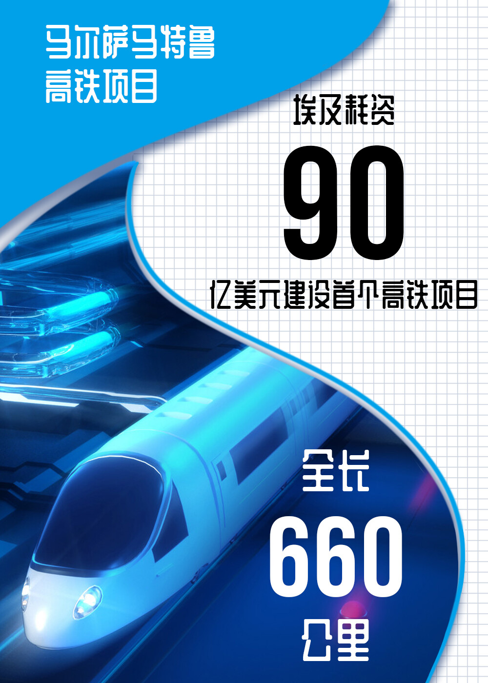 埃及已开始实施该国首个从红海沿岸的艾因苏赫纳到地中海沿岸的马尔萨马特鲁的高铁项目,全长660公里,造价高达90亿美元。