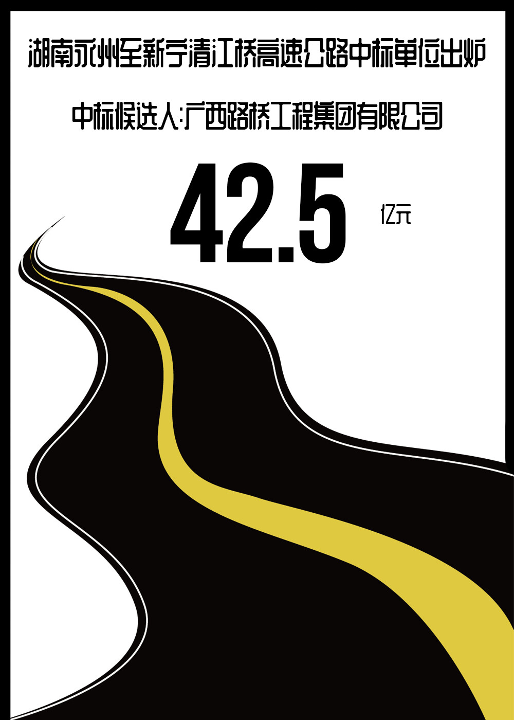 2021年9月1日,湖南省永州至新宁清江桥高速公路项目中标,该项目位于湖南省永州市东安县、邵阳市新宁县境内,本项目计划总工期 48 个月,分为四个标段修建,目前总投资42.5亿元!