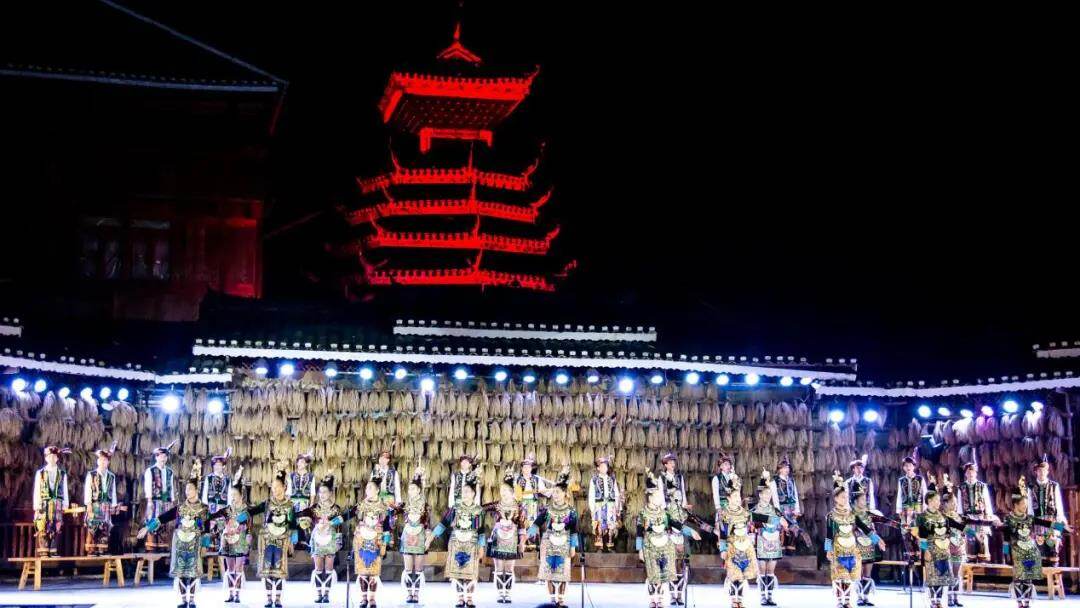 夜幕刚落,深山里的侗寨人家,传来了悠悠歌声,似鸟叫蝉鸣,似高山流水,歌声由远及近,时隐时现,时缓时急,宛如天籁,在空谷山间回响。古老的肇兴侗寨,篝火燃起,千百人齐聚鼓楼,共吹芦笙,齐唱侗族大歌。