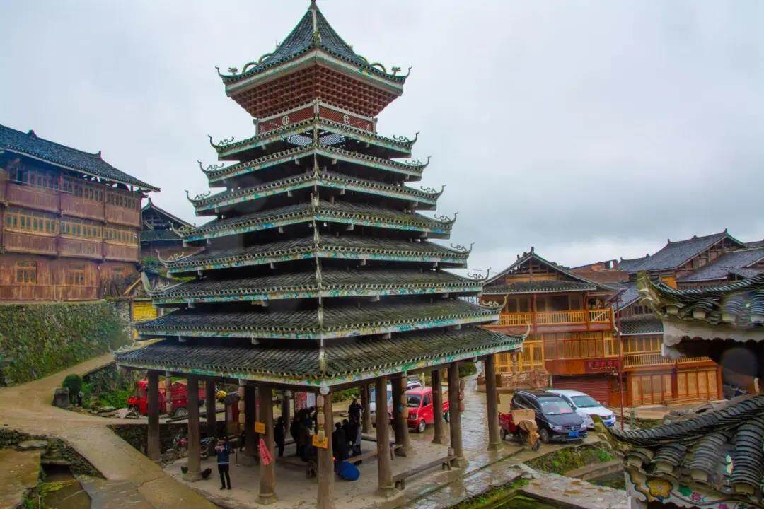 侗族民间有个说法:未建寨,先建楼。由此可见,鼓楼之于侗族,有着举足轻重、无法比拟的地位,每一个侗寨村落的繁衍生息,始终绕不开鼓楼。旧时,寨火山害、土匪骚扰,凡有重大事宜商议,均登顶击鼓,一楼鼓鸣,村寨相传,百姓应声而至,聚于鼓楼。如今,踩堂祭祖、迎宾送客、集众议事、嫁娶丧葬等重大事宜,侗族人也相聚鼓楼。