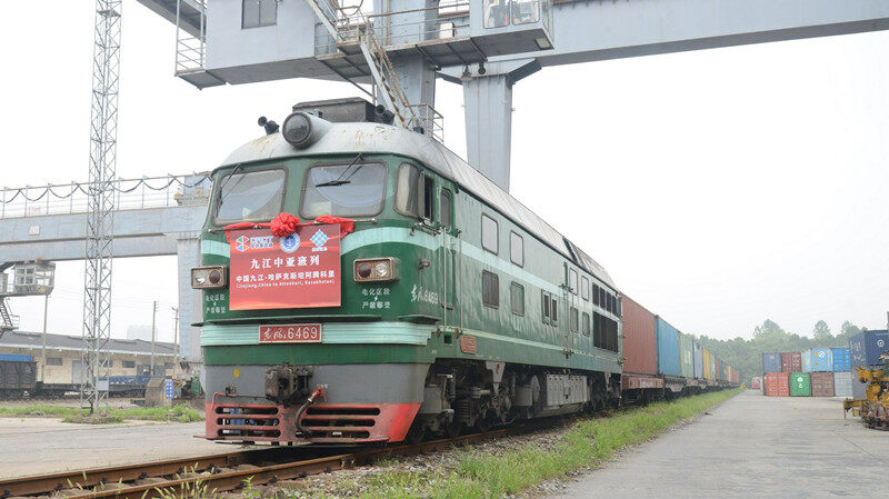 近日,伴随一声汽笛长鸣,一列满载纺织品、机械零部件、家具等货物的中欧班列从中国铁路南昌局集团有限公司九江南站缓缓驶出,经霍尔果斯口岸出境,一路驶向哈萨克斯坦,通过阿腾科里站将货物分拨转运至中亚各地,这是赣北地区有史以来开行的首趟中欧班列。