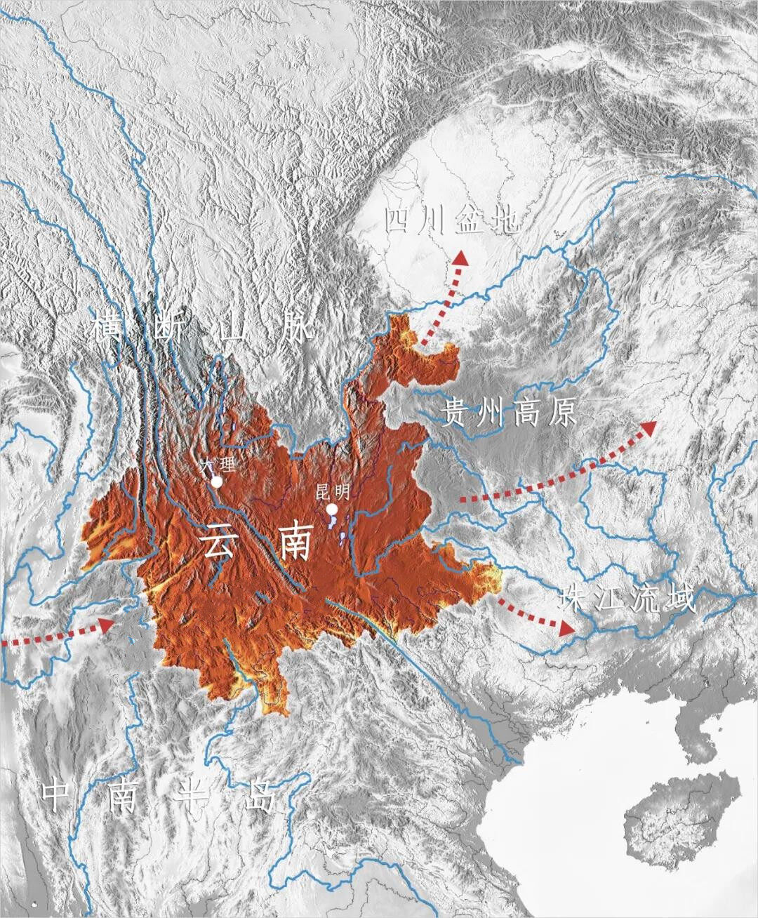 云南虽然以高原为主且高山峡谷纵横,但也是多个大地理板块的交汇处,虽然古代大宗运输有困难,但可以支持作物传播