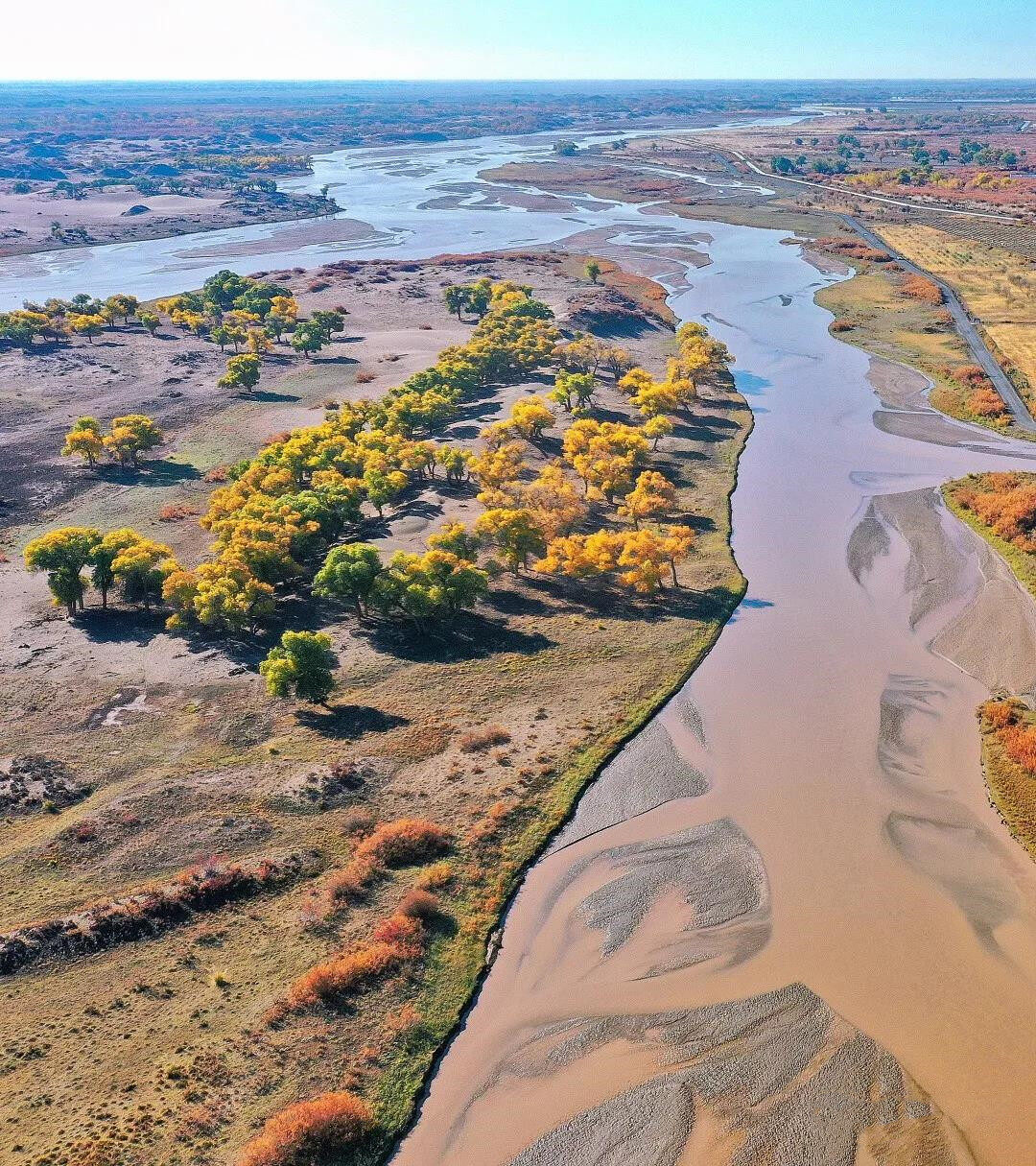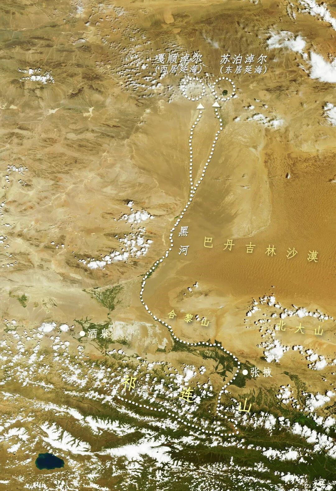 这条重要的河流向北流向大漠深处,直到那个著名的居延海