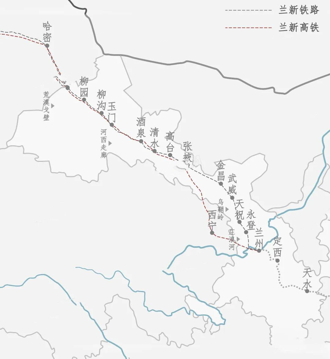 兰新高铁的选线相比兰新铁路,绕过了张掖、兰州之间的一众甘肃城市