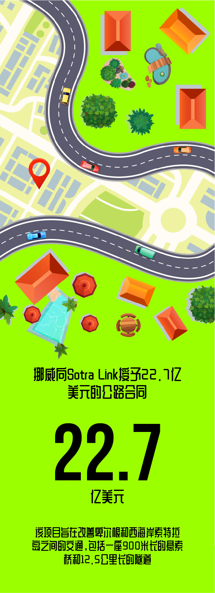 挪威公共道路管理局(NPRA)已授予一项价值22.7亿美元(198亿挪威克朗)的公私合作(PPP)合同,用于资助、设计、建造和运营位于西部韦斯特兰县的9.4公里四车道公路连接线,由澳大利亚麦格理集团、韩国土木工程公司SK Ecoplant和意大利 Webuild共同拥有的跨国Sotra Link联合体。