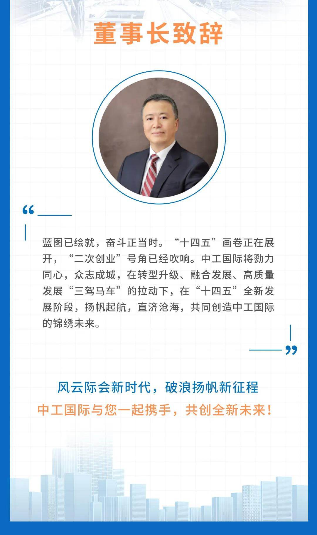 2021年9月8日下午,中工国际召开了公司“十四五”战略规划发布会,发布会主题为“风云际会 破浪扬帆”。