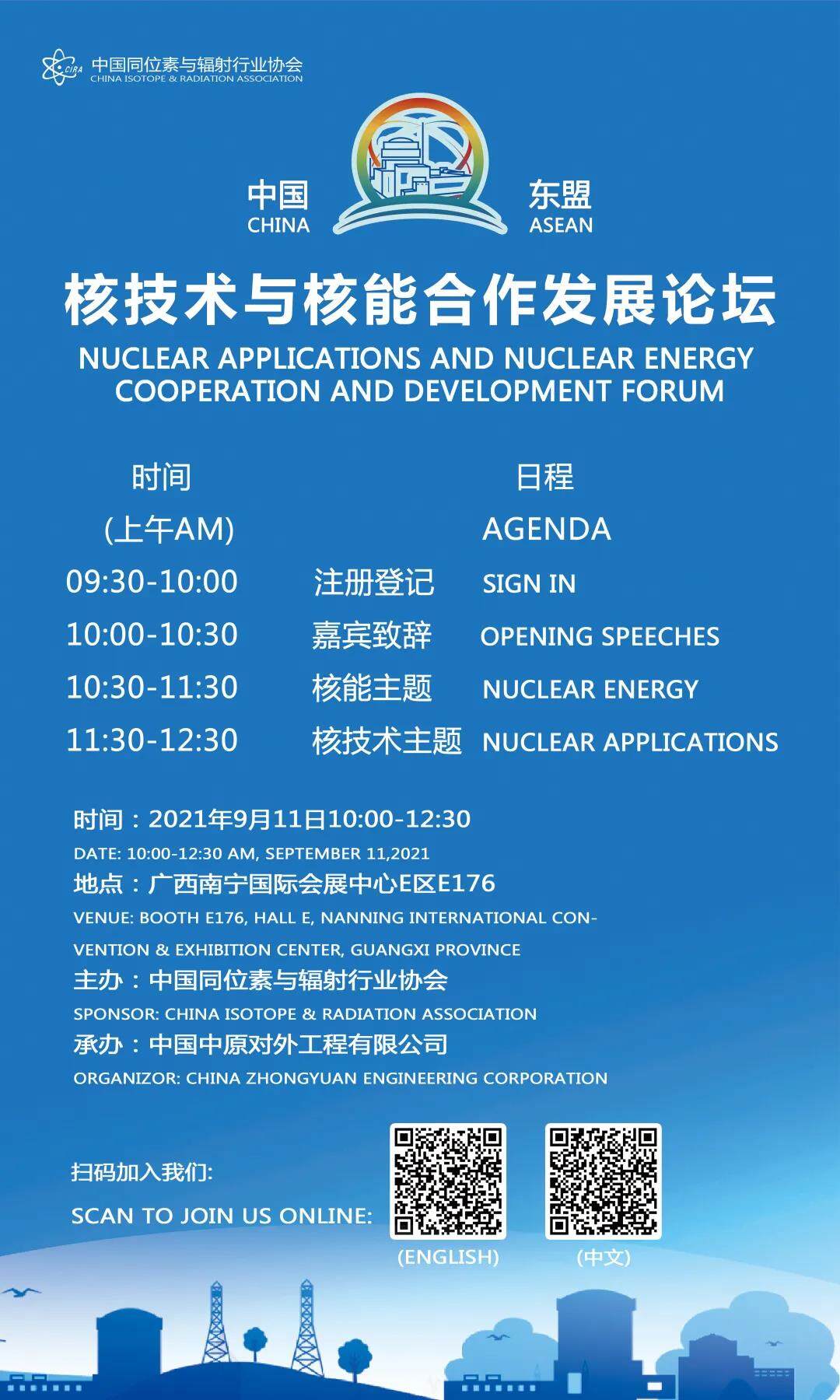 The China Isotope and Radiation Industry Association and China National Nuclear Corporation will hold the "China-ASEAN Nuclear Technology and Nuclear Energy Cooperation and Development Forum" on September 11, 2021 during the ASEAN Expo.