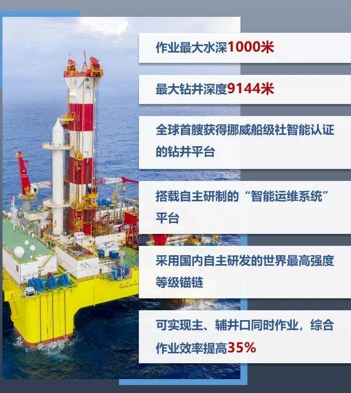 “深蓝探索”是为深水油气勘探开发“量身定制”的新型半潜式钻井平台,适应中国海域水文和气候环境,堪当中国海上中深水海区、高温高压地层、超深埋藏地层的油气勘探开发重任。