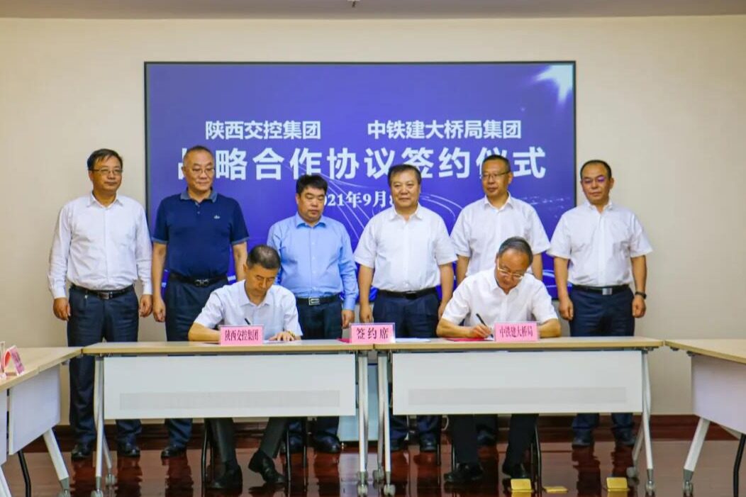 2021年9月8日,中国铁建大桥局党委书记、董事长张树海一行在西安拜会了陕西交控集团党委书记、董事长张文琪等相关领导,双方就深化省内合作,开拓省外市场等问题进行深入交流并达成共识。座谈会后,中国铁建大桥局与陕西交控集团举行战略合作协议签署仪式,中国铁建大桥局党委书记、董事长张树海与陕西交控集团党委副书记、总经理孔庆学共同出席签约仪式并讲话。