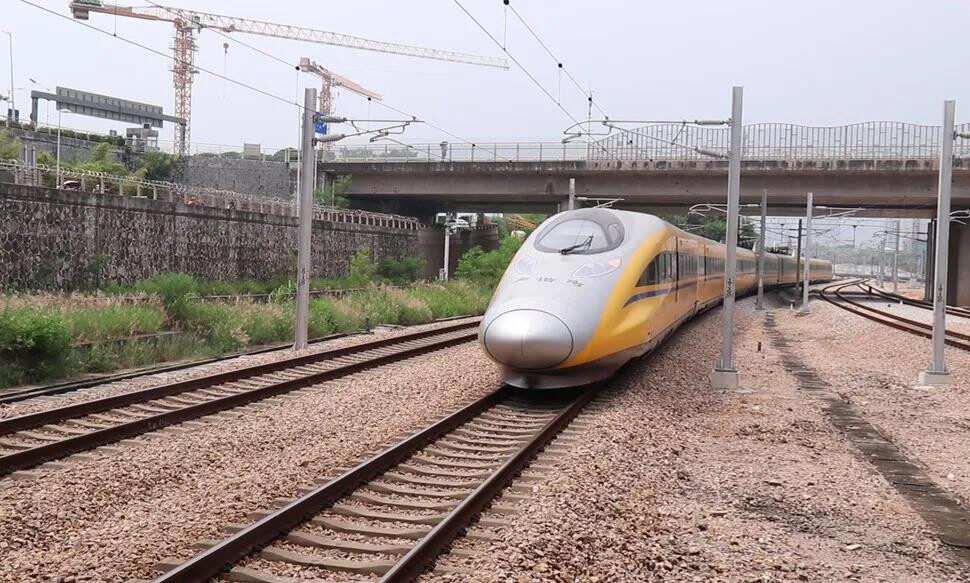 At 13:10 on September 12, 2021, the first 55690 yellow high-speed railway comprehensive inspection train CRH380AJ-0202 from Shenzhen North Station to the border of Guangdong and Jiangxi in the northern part of Heping slowly drove out of Shenzhen North Station, which means that Ganshen The joint commissioning test of the Guangdong section of the high-speed rail is proceeding intensively and orderly, and the entire line has entered a critical period of project acceptance, laying a solid foundation for the trial operation and the opening and operating conditions during the year.