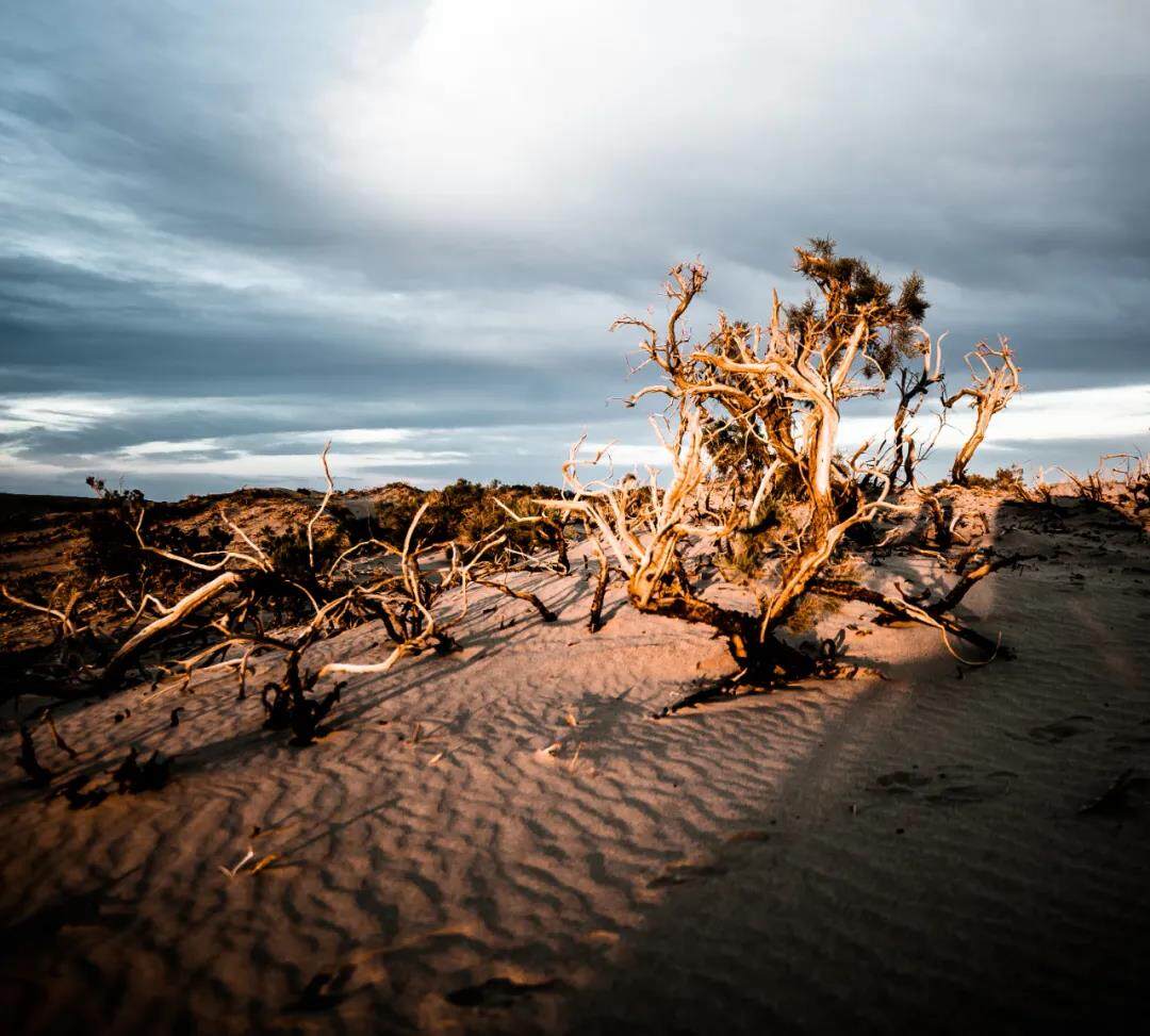 额济纳干枯的胡杨,这些胡杨树已经死亡,但依然挺立不倒