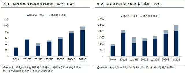 In addition, according to the calculation of Guosen Securities, the current stock of old wind turbine assembly machines with an operating life of more than ten years in the country is about 40-50GW, and most of them are distributed in areas with excellent wind resources in the "Three Norths". With the certainty of the two policies for the renovation of old wind farms, Guosen Securities predicts that the average annual demand for wind turbines in my country during the 14th Five-Year Plan period is expected to increase from 50GW to 60-70GW. 25%.